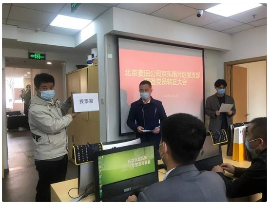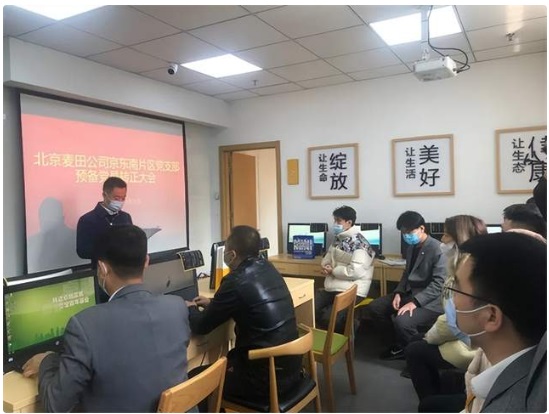 2022年3月25日,北京麥田房產(chǎn)經(jīng)紀(jì)有限公司京東南片區(qū)黨支部召開(kāi)黨員大會(huì),討論預(yù)備黨員李偉同志轉(zhuǎn)正事宜,此次會(huì)議由京東南片區(qū)黨支部組織委員左微微同志主持,本次參會(huì)有表決權(quán)的黨員共14名,符合票選要求,會(huì)議嚴(yán)格按照組織發(fā)展程序進(jìn)行。