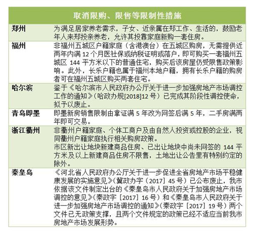 據(jù)不完全統(tǒng)計(jì),鄭州之后,福州、哈爾濱、青島即墨、衢州、秦皇島等地也紛紛取消限購(gòu)、限售等限制性措施。