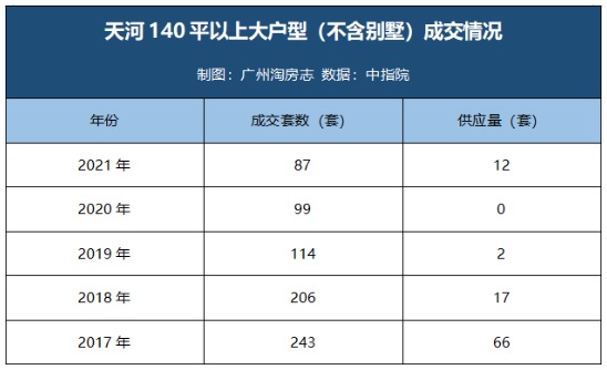 以2021年為例,140㎡以上大戶型,僅有區(qū)區(qū)12套供應(yīng),但成交卻達(dá)到87套,供求比低至0.13,意味著每放出一套房源,就約有10個(gè)人想買入!不難判斷,買少見少的天河大戶型產(chǎn)品,留給普通人的機(jī)會,還會進(jìn)一步壓縮。