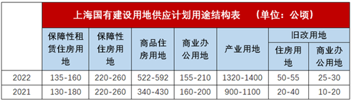 《供應計劃》顯示,2022年上海計劃供應土地面積2427-2707公頃,比20221年計劃供應面積1920-2420公頃總供應量增長明顯。其中計劃供應商品住房用地522-592公頃,同比增幅達44.7%。