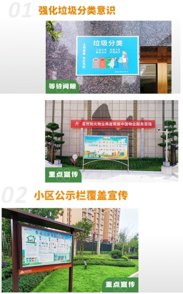 為給廣大業(yè)主提供一個綠色文明的生活環(huán)境,陽光物業(yè)積極推進嚴(yán)格落實垃圾分類措施、加強垃圾分類宣傳意識、強化垃圾分類投放準(zhǔn)確率,最大限度減少環(huán)境污染,提高資源利用率。