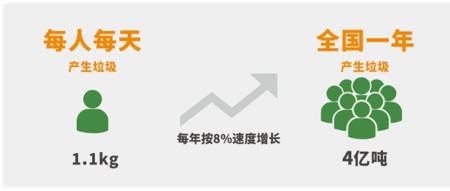 據(jù)資料顯示,我國早在2004年就已經(jīng)超越美國成為世界第一垃圾制造大國。中國平均每人每天產(chǎn)生1.1kg垃圾,每年按8%速度增長,全國生活垃圾年產(chǎn)量為4億噸左右。