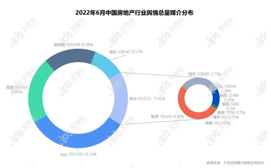 2022年6月中國房地產(chǎn)行業(yè)輿情總量媒介分布