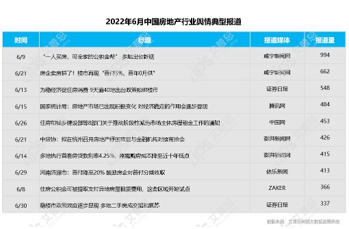 2022年6月中國房地產(chǎn)行業(yè)輿情典型報道
