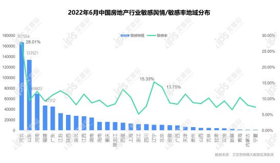 2022年6月中國房地產(chǎn)行業(yè)敏感輿情/敏感率地域分布
