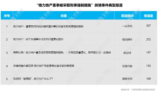 “格力地產(chǎn)董事被采取刑事強制措施”輿情事件典型報道