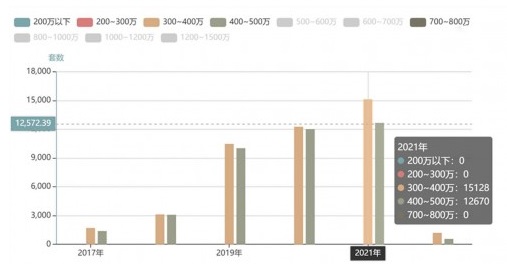 ▲2017-2021年新房商品住宅成交量走勢(數(shù)據(jù)來源:天朗)