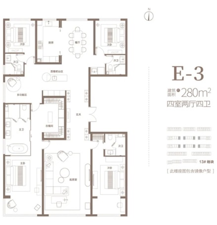 豪宅標(biāo)準(zhǔn)要素3:居住的舒適性。項(xiàng)目的戶型空間尺度足夠大,功能分區(qū)合理,能夠滿足全年齡家庭空間設(shè)計(jì)需要。