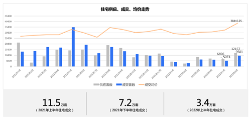 上半年住宅供應(yīng)的最高峰,出現(xiàn)在6月,單月供應(yīng)量達(dá)12157套,成交9501套。