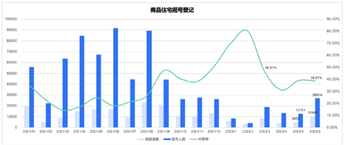 數(shù)據(jù)顯示,上半年全市搖號人數(shù)為84361人、搖號房源37570套,平均中簽率44.5%。相比去年,搖號房源環(huán)比下降了58%、同比下降54%;搖號人數(shù)環(huán)比下降67%、同比下降78%。