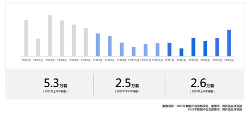 根據(jù)透明售房網(wǎng)成交數(shù)據(jù),2022年上半年杭州市區(qū)二手房網(wǎng)簽量2.8萬套,剔除臨安區(qū)數(shù)據(jù)后,上半年網(wǎng)簽2.6萬套,同比去年上半年下降51%,環(huán)比去年下半年提升3%。