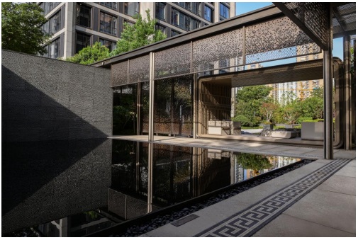 在景觀細(xì)節(jié)上,項(xiàng)目既有遵循中式庭院的造景手法,強(qiáng)調(diào)自然式的疊山理水而打造的靜謐溫馨交流空間;又有運(yùn)用充滿外灘韻味的紅磚元素,承載英式文化和藝術(shù)美學(xué),打造而成的英式花園;更有取自備受喜愛(ài)的枯山水景觀藝術(shù)手法打造的茗松庭院,營(yíng)造禪意氣質(zhì)空間。