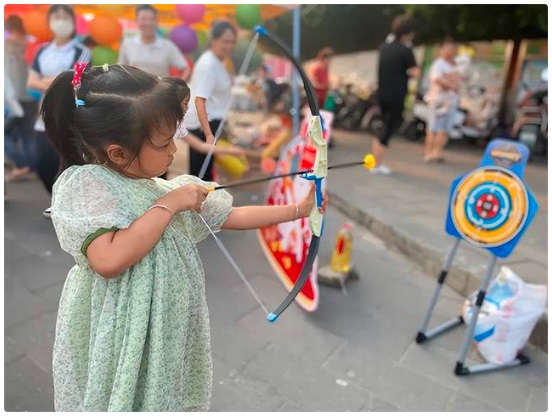 活動現(xiàn)場,麥田還為居民們精心準(zhǔn)備了投壺、射箭等一系列傳統(tǒng)民俗游戲,讓社區(qū)友鄰們,在游戲中感受中國傳統(tǒng)文化民俗的獨特魅力。傳統(tǒng)趣味吸引了大小朋友們的關(guān)注,紛紛體驗參與,現(xiàn)場歡聲笑語不斷!昂荛_心!不僅小朋友,我們大人也玩得很投入!薄斑@些傳統(tǒng)小游戲,現(xiàn)在很少能體驗到了,麥田做這樣的活動很好,這也是一種文化傳承!鄙鐓^(qū)居民為麥田帶來的中秋巧思紛紛點贊。