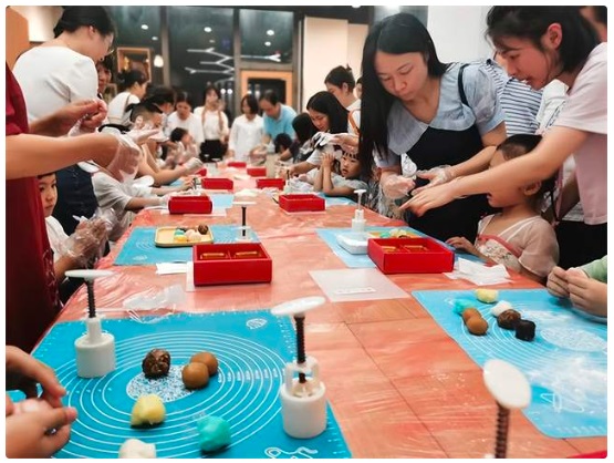 中秋佳節(jié),月餅自然是C位。在活動現(xiàn)場,冰皮月餅DIY也同樣受到大家的歡迎與喜愛。揉面、放餡、包團(tuán)、壓模...不少叔叔阿姨都參與到冰皮月餅DIY活動中來。在這個特殊的日子里,親手制作一份特別的禮物,甜蜜在心頭,更是團(tuán)圓時刻的“專屬美好”。
