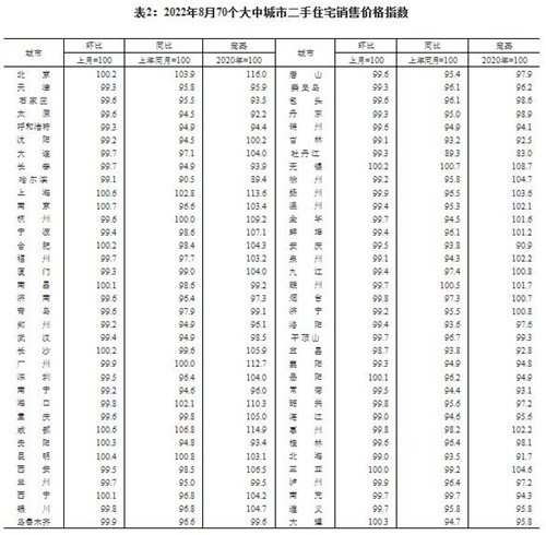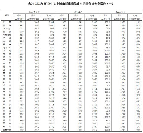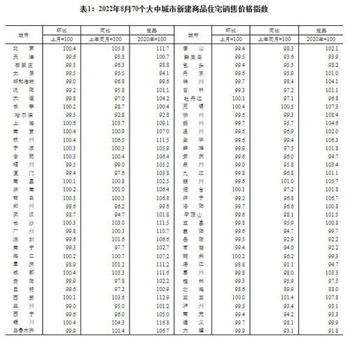 房訊網(wǎng)訊 9月16日,國家統(tǒng)計局發(fā)布2022年8月份70個大中城市商品住宅銷售價格變動情況。