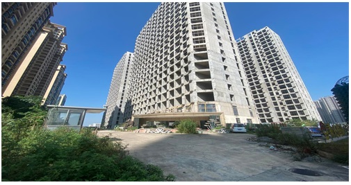 1期2棟(規(guī)劃建設(shè)樓棟為框剪結(jié)構(gòu),地上 22 層。至價值時點整體情況:主體:主體已封頂完工,屋面已完工;門窗:8層以上窗框已安裝,門尚未安裝外墻裝飾:8層以上外墻已粉刷(外墻工序還需噴真石漆);水電:電路橋架已完工,尚未鋪設(shè)線路,防雷工程已完工,上下水已鋪設(shè)完成;消防工程:消防管路已鋪設(shè),消防栓和消防水帶等未安裝,消防設(shè)備(增壓、保壓等)未安裝;電梯:未安裝,室外工程:綠化未做,小區(qū)道路未鋪設(shè)。總完工進度為 86%)。