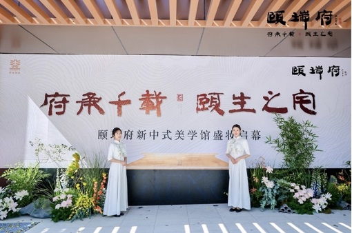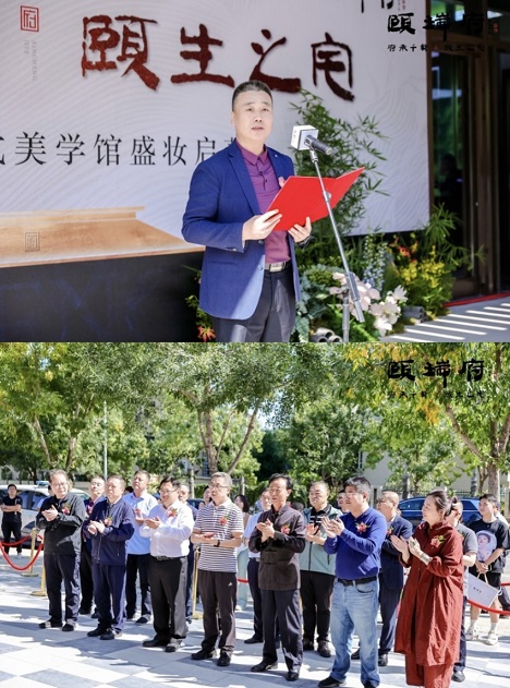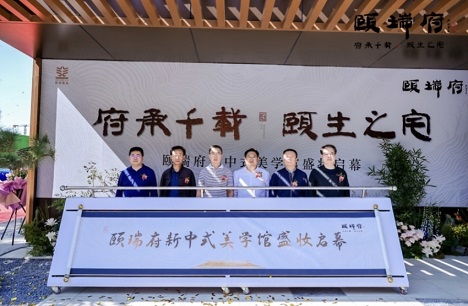 主持人邀請(qǐng)領(lǐng)導(dǎo)們共同上臺(tái)剪彩之時(shí),卷軸徐徐展開(kāi),標(biāo)志著頤瑞府新中式美學(xué)館正式亮相,全場(chǎng)氣氛達(dá)到高潮。至此,一場(chǎng)文化、藝術(shù)與匠心的盛會(huì),正式啟幕!