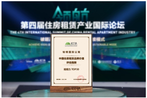 鉑頓國(guó)際公寓獲中國(guó)住房租賃品牌價(jià)值評(píng)估指數(shù)規(guī)模力TOP30