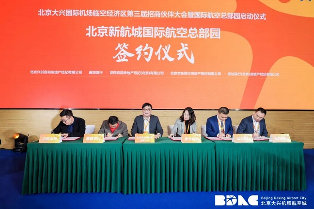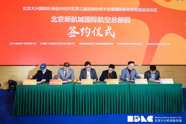 11月15日,北京大興國際機(jī)場臨空經(jīng)濟(jì)區(qū)第三屆招商伙伴大會暨國際航空總部園啟動儀式正式舉辦,新航城公司與北京新航城國際航空總部園項目分別與多家合作伙伴進(jìn)行簽約,正式啟動項目招商工作。