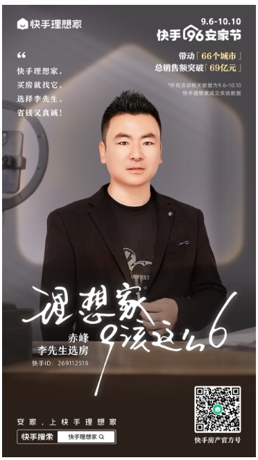 今年,李偉建參與了快手理想家96安家節(jié),活動(dòng)不僅平臺(tái)吸引了超460萬人參加,帶動(dòng)66個(gè)城市的超900個(gè)樓盤成交,總銷售額突破69億,李偉建更實(shí)現(xiàn)了500萬的業(yè)績。