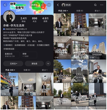 就這樣,他注冊(cè)了名為“赤峰·李先生選房”的快手賬號(hào),開始經(jīng)營起自媒體售房的事業(yè)。但做房產(chǎn)賬號(hào)不是件容易事,李先生既要摸著石頭過河又要兼顧公司業(yè)務(wù)和管理職責(zé),身兼數(shù)職他深感疲累,“就感覺什么都想做的結(jié)果就是什么都做不好”。思來想去,他決定逼自己一把,“我跟公司提了離職,打算全身心投入做短視頻直播”。