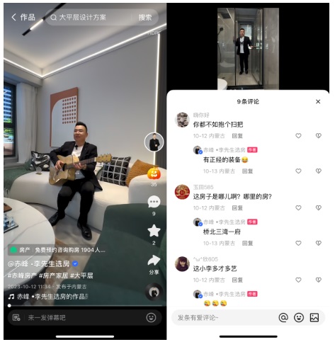 在李先生看來,相比傳統(tǒng)中介模式,直播賣房模式具備多重優(yōu)勢(shì),例如短視頻和直播的富媒體、實(shí)時(shí)互動(dòng)的表達(dá)形式,高效解決了購房者的消費(fèi)決策問題,“就比如我們之前發(fā)傳單,一天‘使大勁’也就發(fā)500張,但現(xiàn)在發(fā)個(gè)段子的瀏覽量可能就是幾千甚至幾萬,一個(gè)主播的人效更是能媲美過去一個(gè)團(tuán)隊(duì),獲客更‘實(shí)惠’了”。