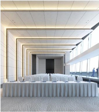 與此同時,城脈中心以前瞻視野打造大型多功能廳,雙層挑高約8米、可容納200余人,并含有貴賓休息室、宴會前廳和正廳等空間格局,滿足企業(yè)大型會議、行業(yè)論壇與交流、產(chǎn)品發(fā)布、展示展覽等多元需求。