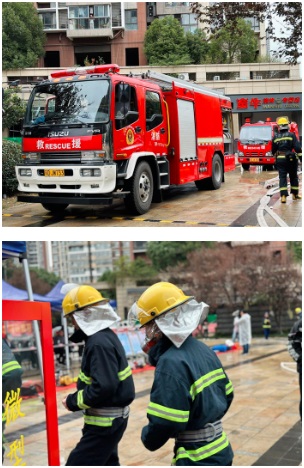 演練當(dāng)天,消控室先發(fā)現(xiàn)火情,發(fā)出火警具體位置,監(jiān)控呼叫巡邏崗現(xiàn)場(chǎng)查看。巡邏崗攜帶滅火器達(dá)到現(xiàn)場(chǎng),并確認(rèn)有火災(zāi),上報(bào)班長(zhǎng),請(qǐng)求支援,班長(zhǎng)及時(shí)匯報(bào)項(xiàng)目現(xiàn)場(chǎng)指揮員,F(xiàn)場(chǎng)指揮員宣布啟動(dòng)消防應(yīng)急預(yù)案,并匯報(bào)總指揮,消控室撥打119報(bào)警滅火人員接通報(bào)后,60秒內(nèi)穿戴好消防服,帶水帶、器材,趕往現(xiàn)場(chǎng)滅火開(kāi)場(chǎng),鋪設(shè)水槍滅火。同時(shí),警戒組開(kāi)始現(xiàn)場(chǎng)用警戒帶設(shè)置隔離區(qū)域,只許出,不許進(jìn)的原則,疏散組手拿指揮棒引導(dǎo)疏散人員進(jìn)行撤離。警戒組在主要路口處設(shè)置引導(dǎo)員,準(zhǔn)備指引消防車輛進(jìn)入,與消防人員配合進(jìn)行滅火,共同全身心投入到實(shí)戰(zhàn)演練中,這也使大家切實(shí)地感受到消防安全的嚴(yán)肅與重要。
