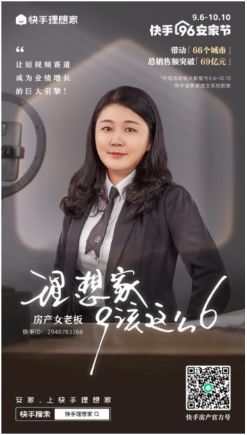 在快手96安家節(jié)中,不僅平臺吸引超460萬人參加,帶動66個(gè)城市的超900個(gè)樓盤成交,總銷售額突破69億,盧文清也借力活動、福利,業(yè)績達(dá)5000萬。