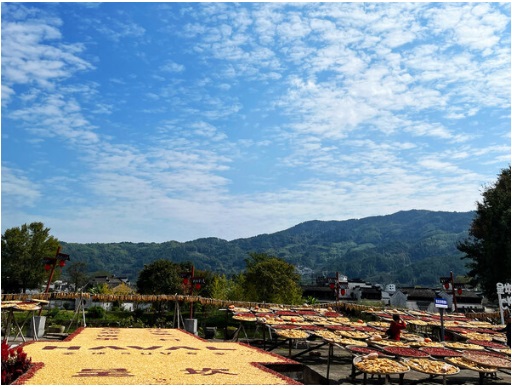 第二站,員工們來到了黃山市呈坎村。呈坎村門口有一平安坎,據(jù)傳說跨過即可一生無坎,大家懷著對未來的期待與祝福依次跨過,增添了本次出行的樂趣。秋季的呈坎,彌漫著豐收的喜悅,當(dāng)?shù)卮迕窭们绾锰鞖,將剛出收獲的農(nóng)作物晾曬到村中的曬場,五顏六色的農(nóng)作物被拼成精美的圖案。離開了城市中的鋼鐵建筑,員工們沉浸在鄉(xiāng)村的自然風(fēng)光中,借助豐收的盛景,一起為公司發(fā)展獻上誠摯祝福。