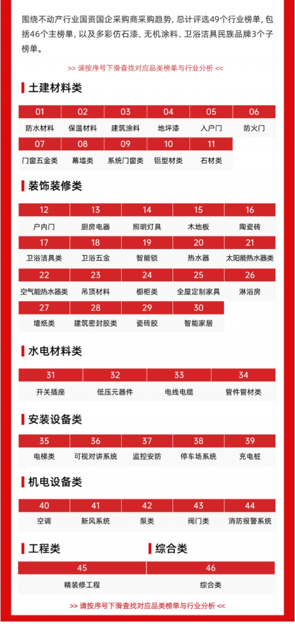 在供應(yīng)商端:結(jié)合行業(yè)大數(shù)據(jù)與過去一年國資國企采購商真實(shí)履約情況,為行業(yè)評(píng)選出“國資國企精選供應(yīng)商十強(qiáng)”“區(qū)域服務(wù)力首推品牌”。高效賦能不動(dòng)產(chǎn)供應(yīng)鏈,助推行業(yè)良性發(fā)展。