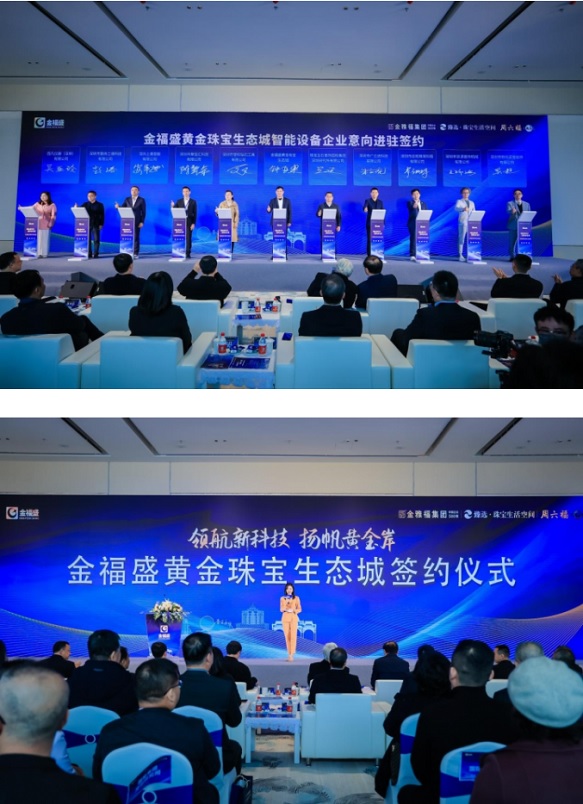 作為大會重要環(huán)節(jié),“領(lǐng)航新科技,揚帆黃金岸——金福盛黃金珠寶生態(tài)城簽約儀式”同期在金福盛黃金珠寶生態(tài)城(下稱“金福盛”)舉行。