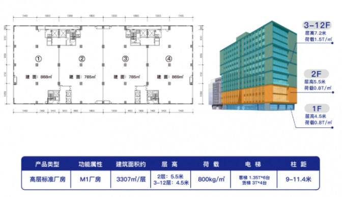 建面約780-3300㎡,7.2—5.5—4.5米層高 ,800kg/㎡高荷載承載空間,打造高品質(zhì)創(chuàng)新產(chǎn)業(yè)空間,讓企業(yè)高效、安全生產(chǎn)的同時,更提升企業(yè)形象,助力企業(yè)未來發(fā)展。