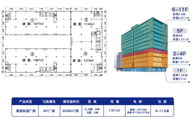 建面約1700-6300㎡,6—7.95米層高 ,8—11.6米超寬柱距,產(chǎn)業(yè)空間靈活組合,可分可合,滿足企業(yè)各個發(fā)展階段資產(chǎn)的不同使用情況,為企業(yè)提供最大限度處置空間。
