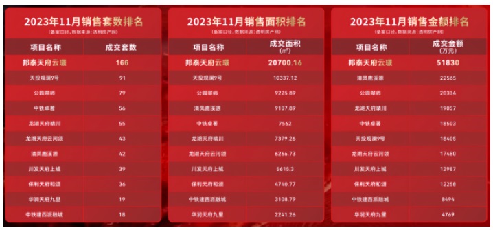 說到產品,四川邦泰被人津津樂道的在售產品就不得不提“以超配敬天新”的邦泰·天府云璟。今年10月28日首開,114、130平當日上午即清盤,143、170平也只剩少量房源,勁銷5億元;在短短兩個月左右,已累計實現(xiàn)銷售金額近9.5億元,到訪超過6000組;11月數(shù)據(jù)顯示,在天府新區(qū)獲得銷售套數(shù)、銷售金額、銷售面積三項領先。而在近日,項目迎來了第5批次的加推,再次引發(fā)高關注,成交火熱。毫無疑問,客戶用真金白銀票選出了天府新區(qū)當下的矚目新星。