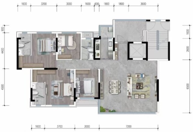 戶型能做到被成都媒體公認“最強戶型”,邦泰將約143㎡的戶型做成了三明衛(wèi)的雙套房設計,2梯2戶,并且還配置了獨立生活陽臺,7.2m大橫廳,95%得房率,再加全名入戶花園,幾乎100%得房率,是目前成都市面上約143㎡做套四三衛(wèi)設計的最強戶型,沒有“之一”。