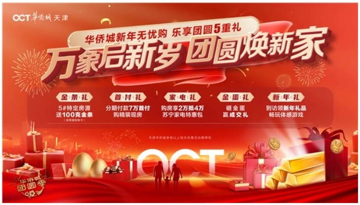 天津華僑城發(fā)起“萬象啟新歲 團(tuán)圓煥新家—華僑城新年無憂購”,誠意滿滿推出家電家裝等五重大禮,“百克金條、唯5所愛”買贈(zèng)活動(dòng)拉滿期待值;涿州華僑城“旦愿有禮,與你同行”活動(dòng)則推出優(yōu)惠房源,成交砸金蛋贏家電好禮;太原華僑城也將推出20套限時(shí)特惠房源,以及新春大禮包,用真情實(shí)意傳遞溫暖,讓福利惠及每位業(yè)主。