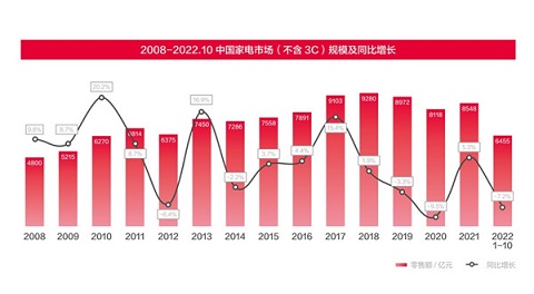 中國家電行業(yè)經(jīng)過多年高速發(fā)展后,隨著普及率提升,市場接近飽和,用戶需求從增量轉(zhuǎn)向換新驅(qū)動。在整體市場橫盤整理背景下,家電下沉市場潛力巨大。GfK中怡康預(yù)測,2022年我國下沉市場中的家電規(guī)模達(dá)到2900億元,同比增長超過14.2%,與整體市場同比7.0%的下降形成鮮明的對比。