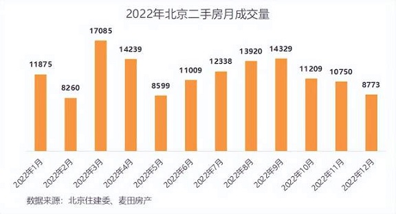 價(jià)格方面,雖然成交量下滑,但北京二手房價(jià)格仍然呈現(xiàn)出穩(wěn)中有升的態(tài)勢,根據(jù)麥田房產(chǎn)數(shù)據(jù)顯示,2022年全年成交價(jià)格環(huán)比2021年上漲3.59%,但因?yàn)槭袌鲈谑鄯吭摧^多,部分房源在年末仍然面臨比較大的調(diào)價(jià)壓力,12月成為全年二手房議價(jià)空間最大的一個(gè)月。