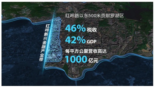 紅嶺新興金融產(chǎn)業(yè)帶位于羅湖福田雙中心交界,長達3.6公里,總面積2.03平方公里,是深圳三大金融增長極之一,“一城一街一帶”最早兌現(xiàn)區(qū)。羅湖區(qū)現(xiàn)有持牌金融機構約100家,數(shù)量居全市第二,其中80%集聚在紅嶺路沿線。
