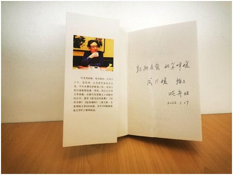 “敦頤后裔 姑蘇嬋媛 周月媛小友雅正 ——曉舟贈!苯K省作家協(xié)會會員、新浪十大時評新銳博主周亞峰先生,親手將這句話提寫在自己出版的新書扉頁上。