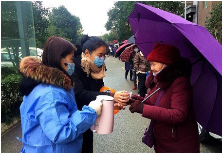 正所謂疫情就是險情,職務(wù)就是責(zé)任。當(dāng)接到每天一次的核酸采樣任務(wù)時,管家周小玉即刻向她的物業(yè)團(tuán)隊發(fā)出戰(zhàn)前動員,并組織大家畫出居民排隊間隔一米線的地面標(biāo)識,煮好供居民們飲用的御寒姜茶!