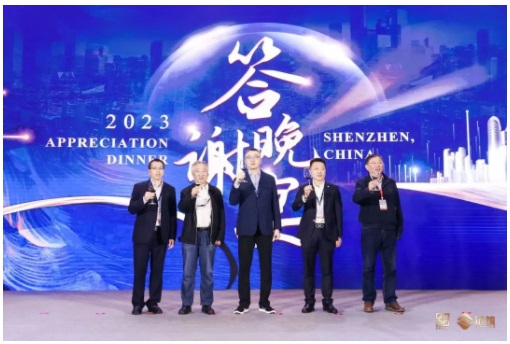 全聯(lián)房地產(chǎn)商會黨委常務(wù)副書記、秘書長、鏈筑分會會長趙正挺先生;住建部市場監(jiān)管司原副司長、全聯(lián)房地產(chǎn)商會鏈筑分會戰(zhàn)略發(fā)展顧問劉哲先生;全聯(lián)房地產(chǎn)商會副秘書長、產(chǎn)業(yè)鏈與建筑工業(yè)化分會秘書長馬學(xué)明先生;全聯(lián)房地產(chǎn)商會鏈筑分會副秘書長、華南區(qū)秘書長李守飛先生;全聯(lián)房地產(chǎn)商會鏈筑分會副秘書長、華東區(qū)秘書長陳敏先生共同為答謝晚宴祝酒。