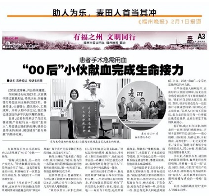 報道中的主人公,是來自福州麥田房產(chǎn)金山中心區(qū) 金山小店B店的楊龍。2022年7月,這位00后小伙,當?shù)弥獦I(yè)主的家人在醫(yī)院急需獻血,他和店里的另一名伙伴滕超麗第一時間響應,前往醫(yī)院義務獻血,收獲了業(yè)主家人的由衷感謝:“是你們救了我母親的生命”。
