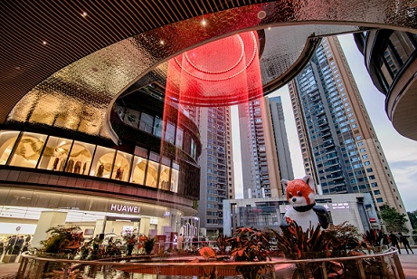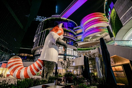 位于成都知名交子公園商圈核心區(qū)域的成都招商大魔方,是去年全新開業(yè)的項目,也是招商商管在成都打造的第一個特色商業(yè)項目。項目總建筑面積約112萬平米,涵蓋演藝中心、城市級購物中心、超甲級寫字樓、豪華公寓、朗廷酒店、高端住宅六大業(yè)態(tài),以“城市潮玩新引力”為定位,設置了科技城市生長樹、亞馬遜森林瀑布、魔方之心、巨幕裸眼3D屏、空中天際跑道等“五大沉浸式特色空間場景”。