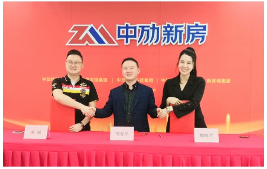 中勱集團總裁及中勱新房董事長鄒春平,新房網董事長及中勱新房聯合創(chuàng)始人奉鵬,中勱新房總經理魏喻芊出席儀式,共同簽署中勱新房合作協議。