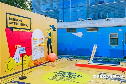 從空中俯瞰,751的兩列火車頭仿佛筆直的畫框,為我愛我家大地藝術(shù)展分割出了長(zhǎng)達(dá)17米的室外空間。參與者徜徉在前后有序排布的15個(gè)“房間”內(nèi),一副壯麗的城市生活動(dòng)態(tài)長(zhǎng)卷就此展開,也讓751從網(wǎng)紅打卡地升級(jí)為濃縮生活樂(lè)趣的巨型“流動(dòng)櫥窗”。