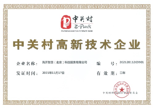截至目前,海開智慧已申請13項計算機(jī)軟件著作權(quán),并獲多項殊榮:2021年獲評“中關(guān)村高新技術(shù)企業(yè)”;2022年獲評“國家高新技術(shù)企業(yè)”與“雙軟企業(yè)”;2023年獲評“北京市創(chuàng)新型中小企業(yè)”。