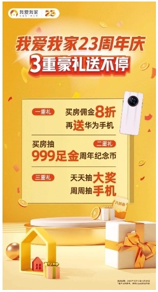 奮斗廿三載,攜手向未來。迎來23歲生日的我愛我家,扎根在萬家燈火的城市中,扎根在車水馬龍的街道旁,扎根在煙火升騰的社區(qū)里,更扎根在與千千萬萬奮斗者共同奔跑的8395個日夜。我愛我家謹記時代使命,肩負客戶囑托,提供用心服務,致力于滿足客戶全生命周期住房需求,追求用不斷提升的企業(yè)價值與客戶的幸福生活相伴始終。此次“我愛我家23周年慶,三重豪禮送不!被顒,是致力于“成為更好居住生活智慧服務的推動者”的我愛我家分享成果、引領(lǐng)發(fā)展、回饋社會的又一有力舉措。