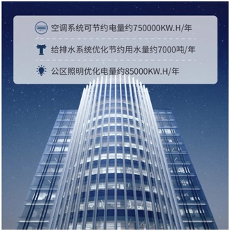 華遠在改造建設(shè)過程中,將“雙碳”節(jié)能技術(shù)充分應(yīng)用到項目空調(diào)、弱電、給排水、電氣和智能化等系統(tǒng)中,采用高效制冷機組,冷熱源末端優(yōu)化控制、中水系統(tǒng)再利用、照明系統(tǒng)優(yōu)化等方式,通過群智能控制系統(tǒng)實現(xiàn)整體系統(tǒng)節(jié)能降碳運行。因此,北京金融科技中心較同級辦公樓宇可實現(xiàn)大幅節(jié)能指標(biāo)優(yōu)化效果。